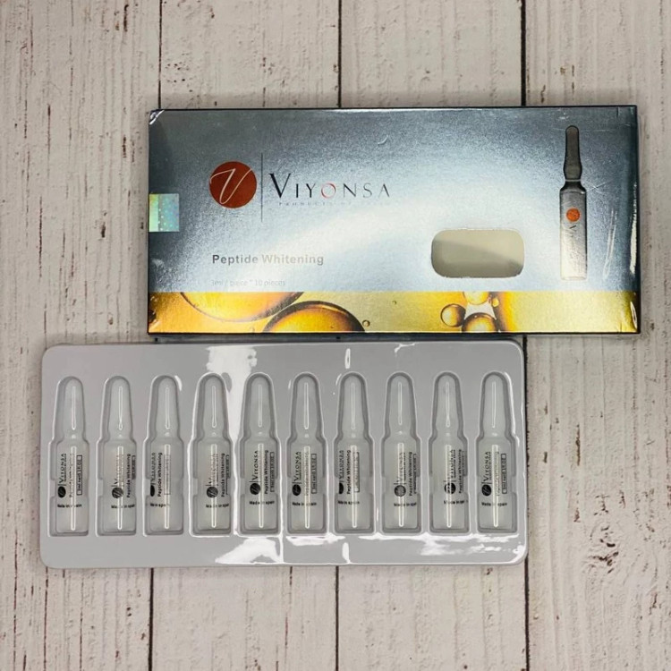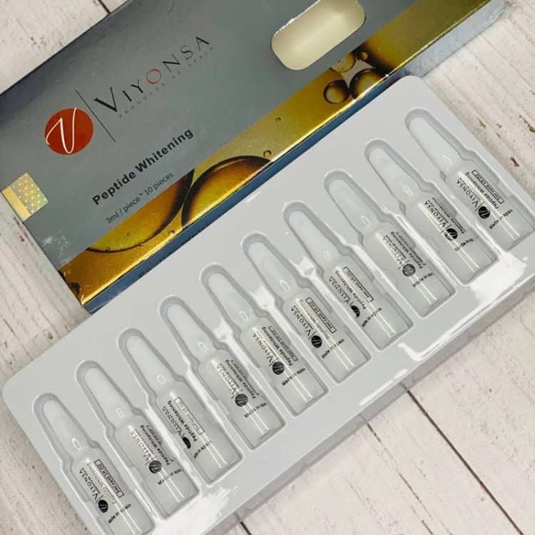 ویال سفید کننده و ضد لک ویونسا VIYONSA ویژگی های محصول: برند: Viyonsa کشور سازنده: اسپانیا هر پک شامل 10 عدد ویال 3 میلی رفع لک و کک و مک های پوستی آبرسان و مرطوب کننده شفاف کننده پوست روشن کننده و درخشان کننده قوی پوست مناسب اقایان و بانوان ویال آمپولی سفید کننده و ضد لک ویونسا شامل مواد مختلفی هستند که به کاهش لکه های تیره و ناهنجاریهای رنگ پوست کمک میکنند. این ویال روند تولید ملانین که باعث ایجاد تیرگی در پوست می شود را کنترل می کند و آنزیم های تیروزیناز که همان آنزیم های درگیر در سنتز ملانین هستند را به نسبت قابل توجهی مهار می کند. ویال تخصصی ضد لک viyonsa یکی از مناسبترین محصولات برای برطرف نمودن لک های پوستی و شفاف کردن پوست شما می باشد
