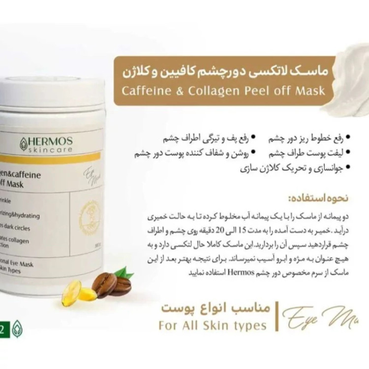 ✅ماسک دور چشم کلاژن و کافئین هرموس حجم 300 گرم ماسک دور چشم کلاژن و کافئین هرموس، کلاژن هیدرولیز شده باعث بهبود علائم خشکی پوست می شود مولکول های کلاژن رطوبت را به پوست متصل می کنند و باعث استحکام پوست می شوند. در ماسک کلاژن و کافئین دور چشم علاوه بر کلاژن و کافین از هیالورونیک اسید نیز استفاده شده است که این سه ماده در کنار هم باعث می شود پوسط اطراف چشم کاملا آبرسانی شده و موجب جوانسازی و کاهش خطوط اطراف چشم و رفع پف و تیرگی می شود. رفع خطوط ریز دور چشم لیفت پوست اطراف چشم جوانسازی و تحریک کلاژن سازی رفع پف و تیرگی اطراف چشم روشن و شفاف کننده پوست دور چشم