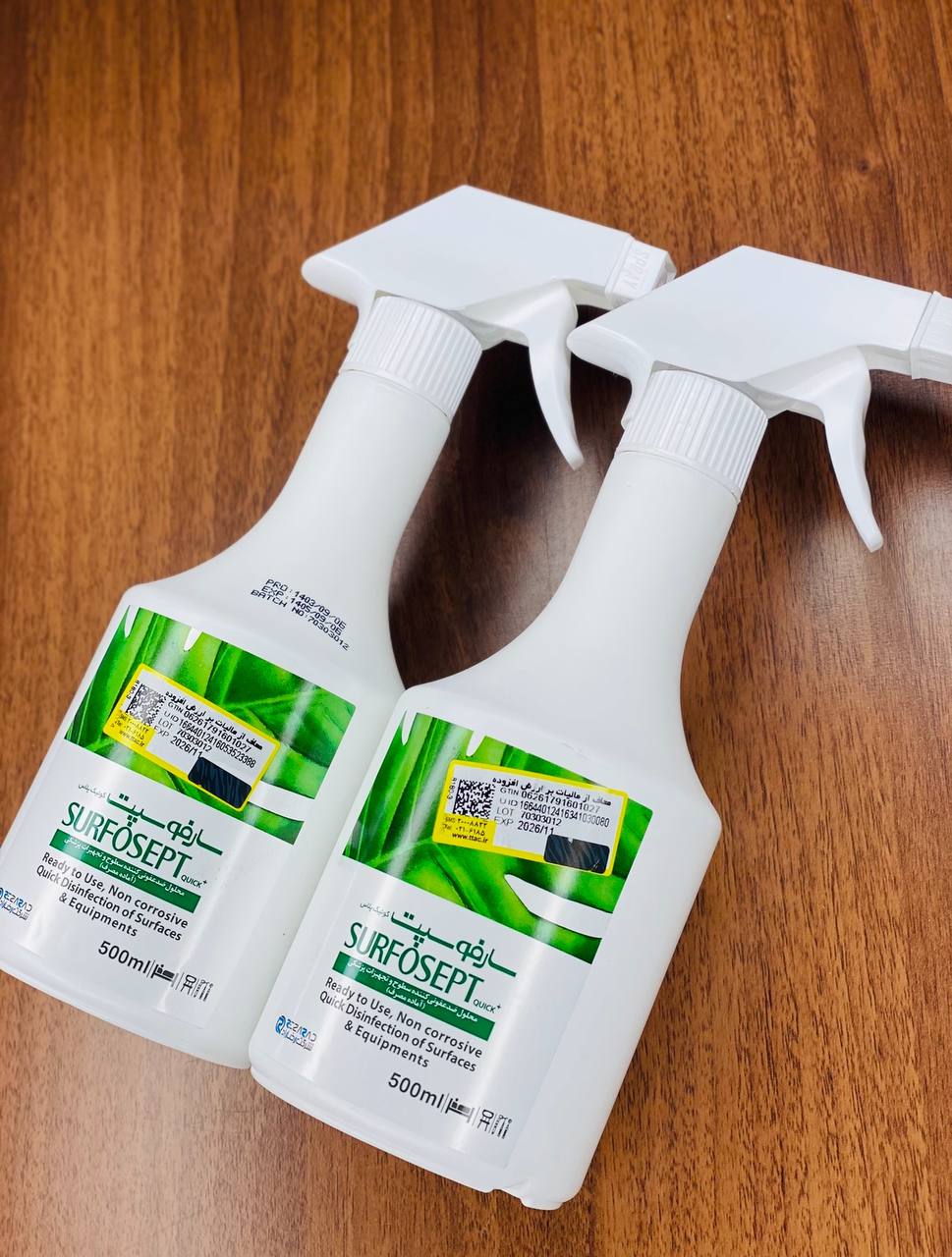 • مقدار کافی از محلول سارفوسپت را روی سطح اسپری کرده یا با پارچه تمیز آغشته کنید.