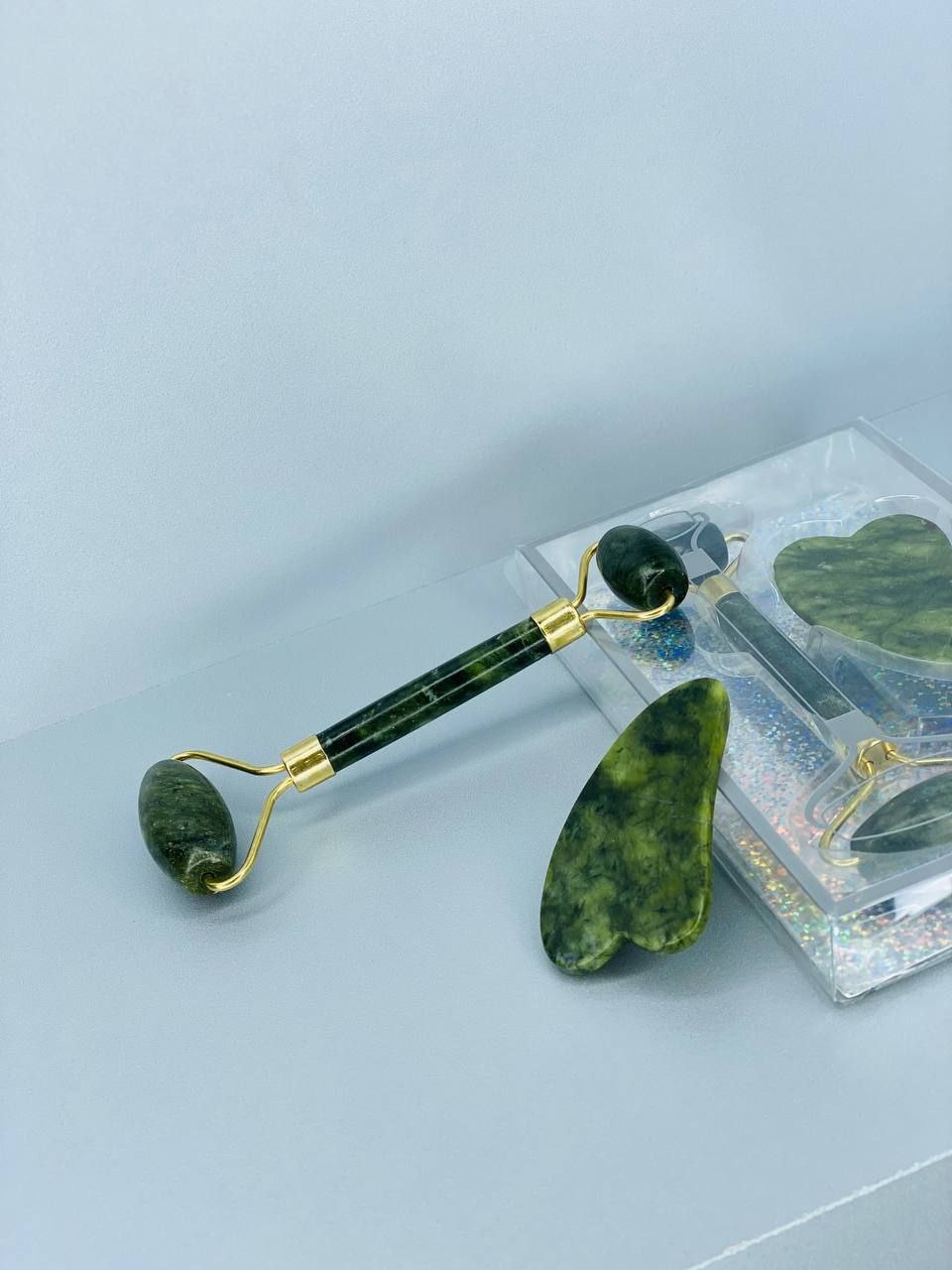نام محصول: پک ۲ عددی سنگ گواشا و جید رولر (Gua Sha & Jade Roller Set)