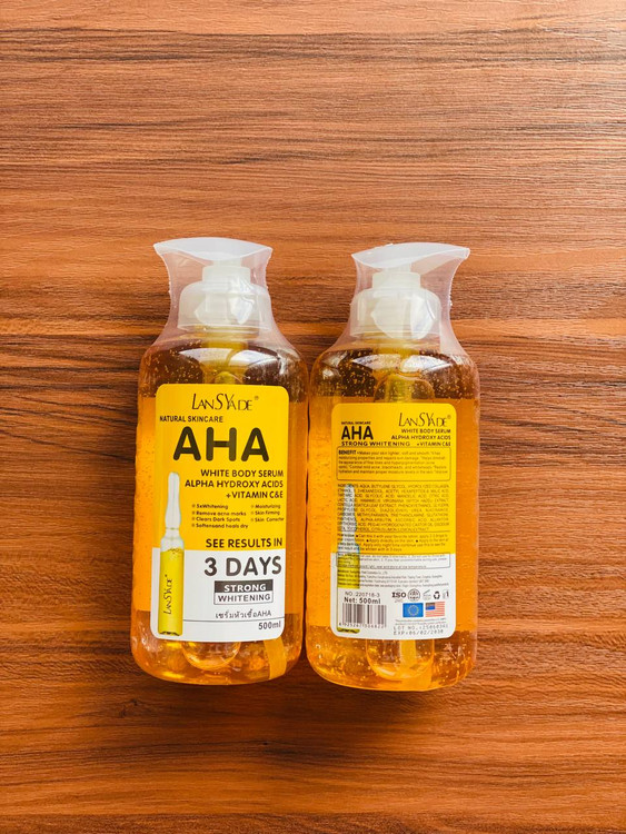 سرم روشن کننده بیکینی لنسیاد مدل AHA حجم 500 میل سفيد کننده جاهای حساس بدن رفع جوشهای بدن محصول فوق العاده عالی برا تیرگی بیکینی و زیر بغل و تمام بدن است.